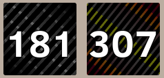 The one significant part of the original DIVE's stripe rules I don't understand is what happens when the outer layer of a multi-layer stripe has a factor of 7 in it. 181's residue is 91, which is 7×13, so the outer stripe is 7, and then 13's residue is 7 so the inner stripe is also 7. 307, meanwhile, has a residue of 154, 2×7×11, so the outer stripe is 14 and the inner stripe is 11's residue, i.e. 6. What I think the original DIVE is doing is somehow making the gradient's color fade in at the outside of the stripes, so 181's stripes get darker towards their edges since 7's gradient color is 1's black, and 307's stripes get redder towards their edges since 14's gradient color is 2's red. Since I didn't know how to handle this, the Compendium goes for a different approach, simply giving the outer stripes a gradient like how the inner stripes get a gradient if they're a multiple of 7.