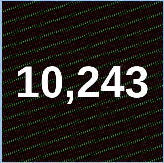 So, with both of the remaining issues taken care of, does that mean that the Power Compendium's version of the DIVE color scheme can keep generating patterns forever? Well... in theory it can, but there are two issues. First, eventually the stripes would get so dense that you couldn't see them as anything more than a mesh anymore. Here's what a prime in the low five-digit range and a prime in the low six-digit range would look like: