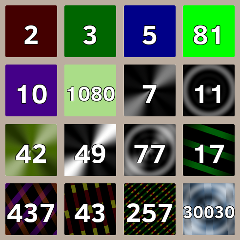 DIVE is a 2048 variant in which two tiles can merge if one is a multiple of the other. Every integer greater than 1 can be reached as a tile, and it has a very intricate color scheme it uses to display its tiles so that it's easy to tell what tiles can merge. This blog post explains in detail how DIVE's color scheme works.