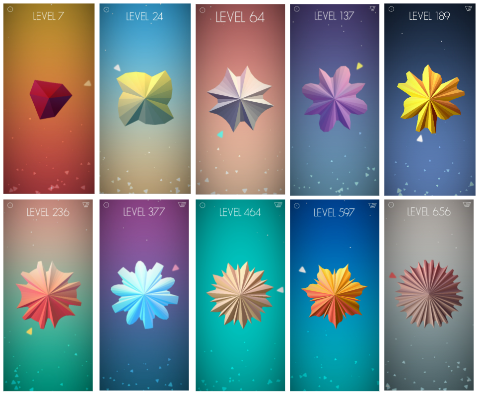 Polyforge is a mobile game that has infinite levels that gradually get harder and harder. After spending a while analyzing how the level-generating algorithm might work, I've created a table of the first 700 levels of Polyforge, sorting them based on the types of shapes they are.